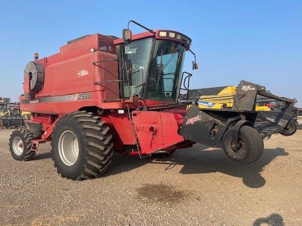Firestone 30.5L-32 Front Tires, Firestone 14.9-24 Rear Tires, Auger for header 40', STD CHOPPER, AFX rotor, Std Lighting, Delux cab (radio, cloth seat), chaff spreader, SMALL GRAIN CONCAVES, topper, rocktrap, Case 1015 pickup header, 12', SUPER 8 PICKUP