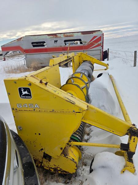 800/65R32 Front Tires, 600/65R32 rear tires, HEADER TILT, Led Lighting, Std cab (Cloth seat, radio), 2006 Kemper Champion 360 corn header, 1999 JD 645A Hay Header, cc645ax051268