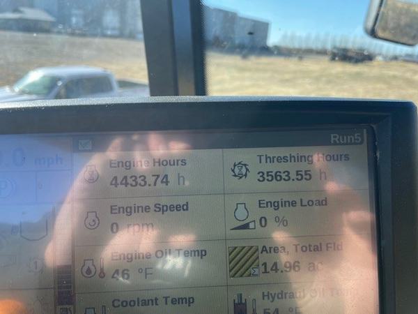 900/60R32 Front Tires, 600/65R28 Rear Tires, Auger gor header 40', STD CHOPPER, Conventional rotor, Full HID, Luxury cab (radio, leather seat), chaff spreader, concaves, LATERAL TILT, Hydraulic Cover Hopper, Full GPS (IV4), 2011 New Holland 790 pickup header, 15'