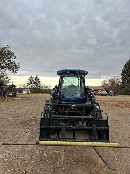 Goodyear 480/85R34 Tires, Hydrostatic Transmission, a/c cab, Cloth Heated/Vented Seat, HID Lighting, 3 PT. HITCH, Standard Drawbar, PTO, 4 Hydraulic Remotes, Reversible Fan, New Holland Loader, GRAPPLE BUCKET, PALLET FORKS